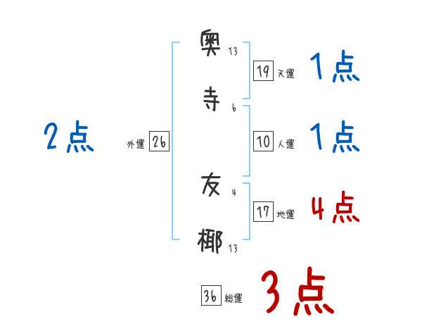 奥寺友椰さんの画数の鑑定結果