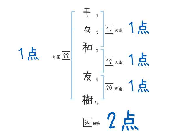 総運![]() | 千々和友樹さんの総運は34画の2つ星!独創性に優れるが、自尊心が強く災難に注意しましょう。 あなたの人生を表す1番重要な運勢です。生涯を通じて影響する総合運となり、主に50歳以降の晩年期に影響を及ぼします。 |
