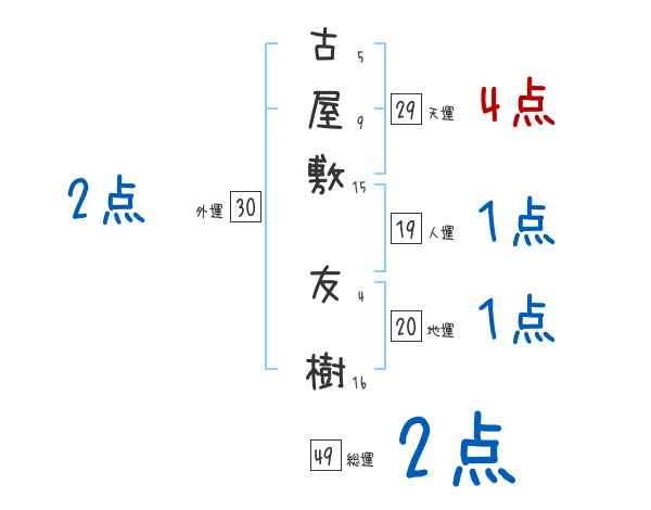 古屋敷友樹さんの画数の鑑定結果