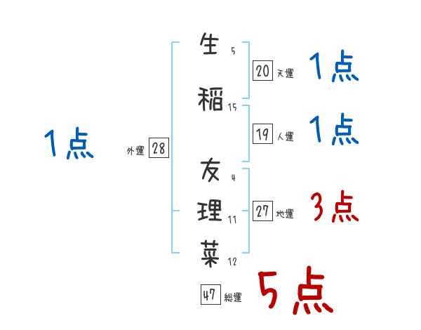 生稲友理菜さんの画数の鑑定結果