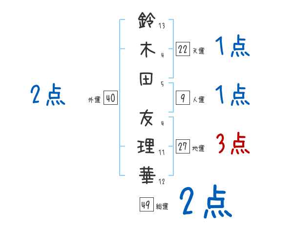 鈴木田友理華さんの画数の鑑定結果