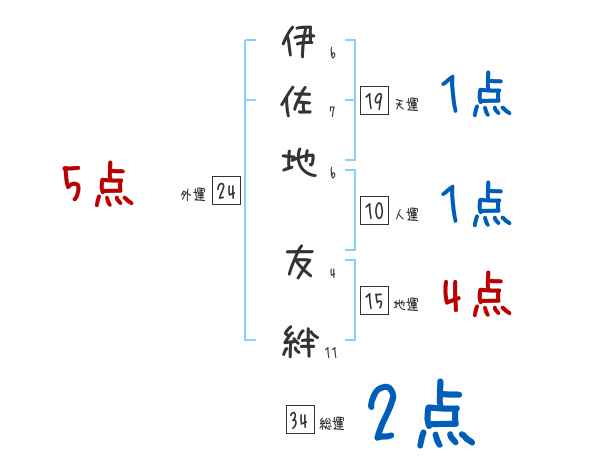 伊佐地友絆さんの画数の鑑定結果