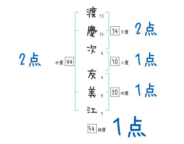 渡慶次友美江さんの画数の鑑定結果