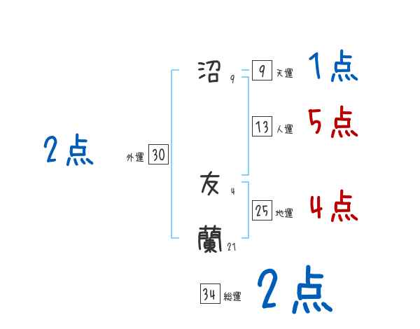 沼友蘭さんの画数の鑑定結果