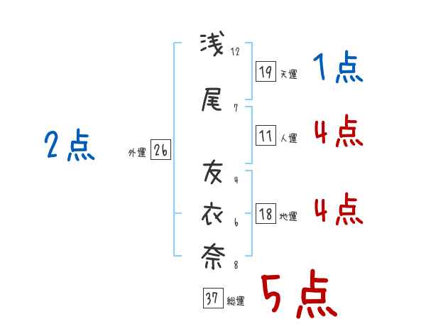 外運![]() | 浅尾友衣奈さんの外運は26画の2つ星!波瀾万丈かも。信頼できる人を大事にしましょう。 生活面を象徴する運勢です。外部から受ける影響力を表し、結婚運、家庭運や職場、環境への順応性を表します。 |