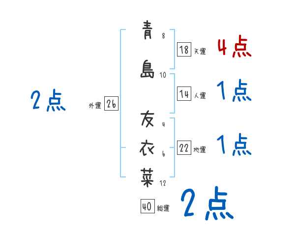 青島友衣菜さんの画数の鑑定結果