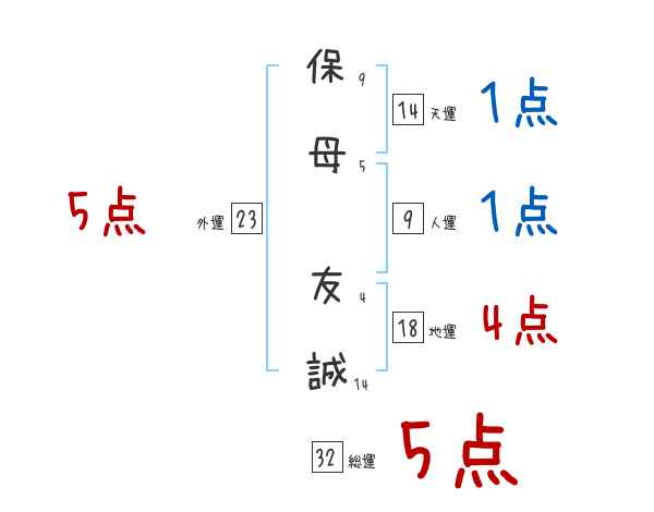 総運![]() | 保母友誠さんの総運は32画の5つ星!柔軟性があり成功する。チャンスが多く金運が良い。 あなたの人生を表す1番重要な運勢です。生涯を通じて影響する総合運となり、主に50歳以降の晩年期に影響を及ぼします。 |