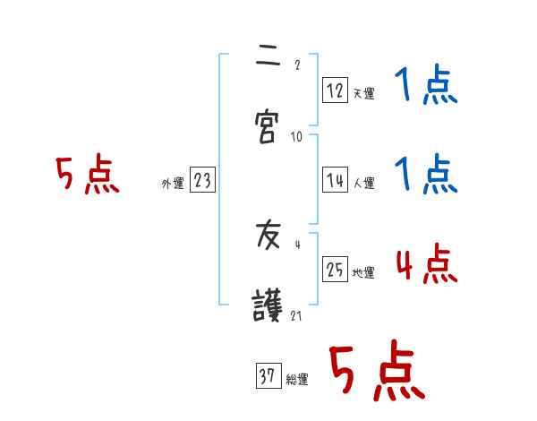 二宮友護さんの画数の鑑定結果