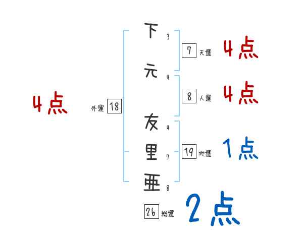 総運![]() | 下元友里亜さんの総運は26画の2つ星!波瀾万丈かも。信頼できる人を大事にしましょう。 あなたの人生を表す1番重要な運勢です。生涯を通じて影響する総合運となり、主に50歳以降の晩年期に影響を及ぼします。 |