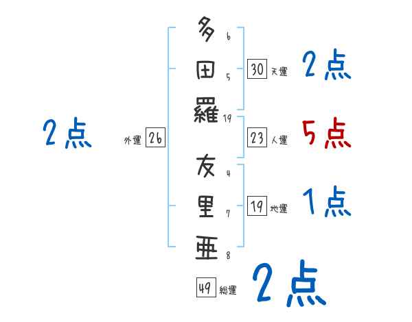 多田羅友里亜さんの画数の鑑定結果