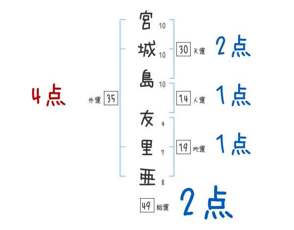 宮城島友里亜さんの画数の鑑定結果