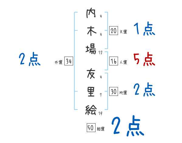 内木場友里絵さんの画数の鑑定結果