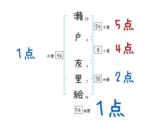 瀬戸友里絵さんの画数の鑑定結果