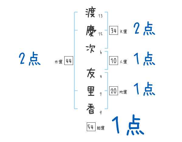 天運![]() | 渡慶次友里香さんの天運は34画の2つ星!独創性に優れるが、自尊心が強く災難に注意しましょう。 家系が持つ宿命的な運勢を表します。祖先から受け継いだ苗字ですので自分の力が及びません。家柄を象徴します。 |