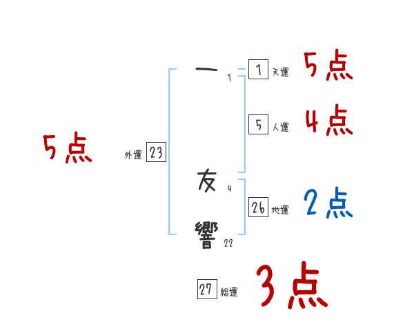 一友響さんの画数の鑑定結果