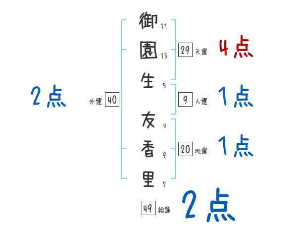 御園生友香里さんの画数の鑑定結果