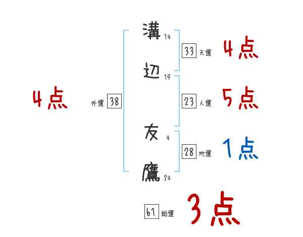 溝辺友鷹さんの画数の鑑定結果
