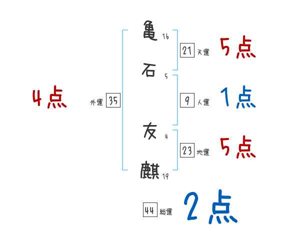 亀石友麒さんの画数の鑑定結果