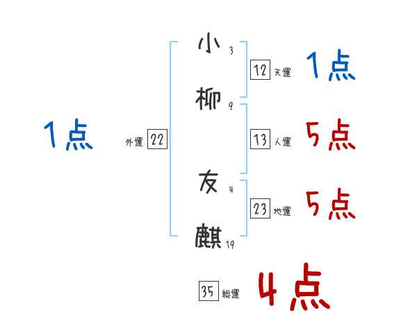 小柳友麒さんの画数の鑑定結果