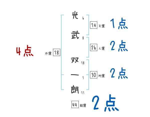 天運![]() | 光武双一朗さんの天運は14画の1つ星!人に対して優しいがストレスを溜め込みがち。人間関係のトラブルを避けるよう気をつけましょう。 家系が持つ宿命的な運勢を表します。祖先から受け継いだ苗字ですので自分の力が及びません。家柄を象徴します。 |