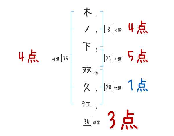 木ノ下双久江さんの画数の鑑定結果