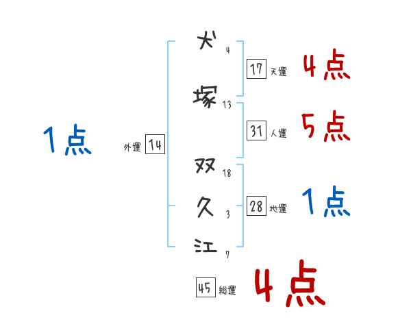 犬塚双久江さんの画数の鑑定結果