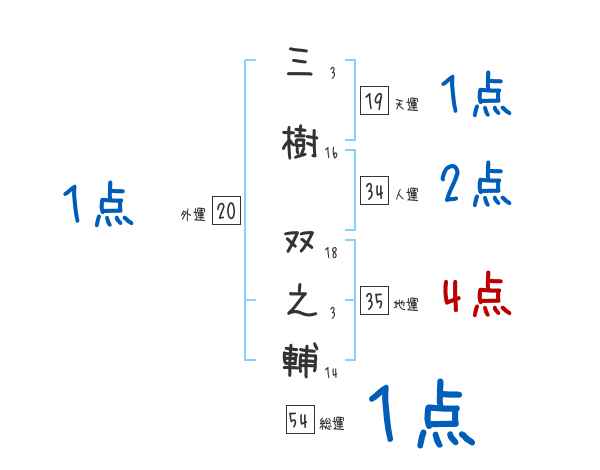 天運![]() | 三樹双之輔さんの天運は19画の1つ星!優れた才能を持ちますが、協調性が足りないことも。周りの人と協力する事を意識しましょう。 家系が持つ宿命的な運勢を表します。祖先から受け継いだ苗字ですので自分の力が及びません。家柄を象徴します。 |