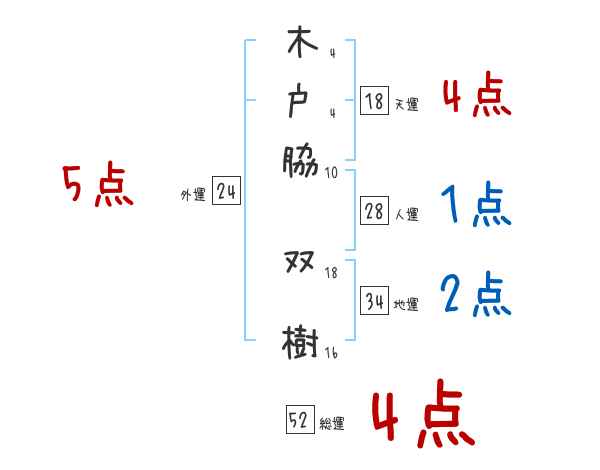 外運![]() | 木戸脇双樹さんの外運は24画の5つ星!家庭運が良く順調な人生。金運にも恵まれる。 生活面を象徴する運勢です。外部から受ける影響力を表し、結婚運、家庭運や職場、環境への順応性を表します。 |