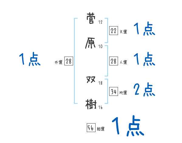 菅原双樹さんの画数の鑑定結果