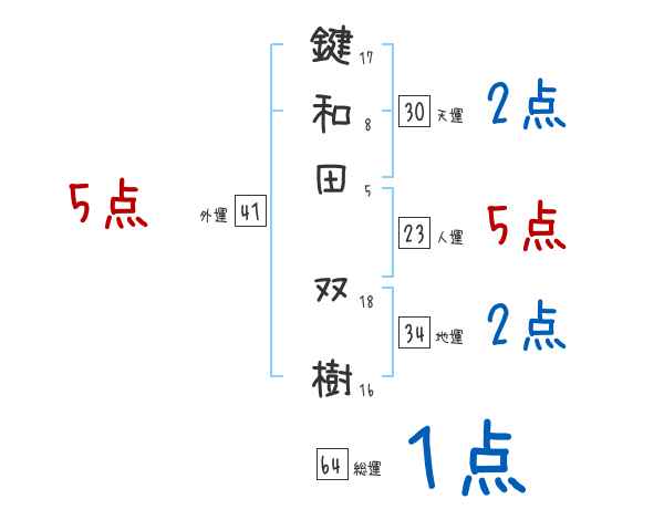 鍵和田双樹さんの画数の鑑定結果
