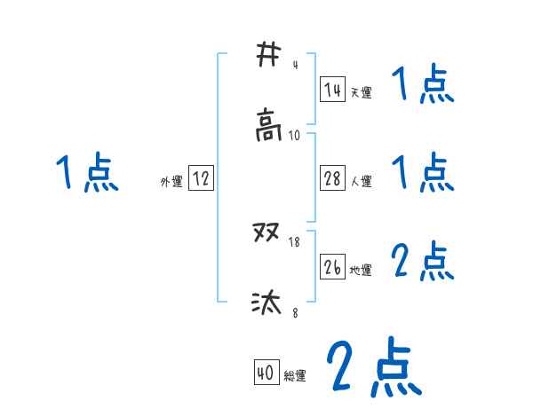 天運![]() | 井高双汰さんの天運は14画の1つ星!人に対して優しいがストレスを溜め込みがち。人間関係のトラブルを避けるよう気をつけましょう。 家系が持つ宿命的な運勢を表します。祖先から受け継いだ苗字ですので自分の力が及びません。家柄を象徴します。 |