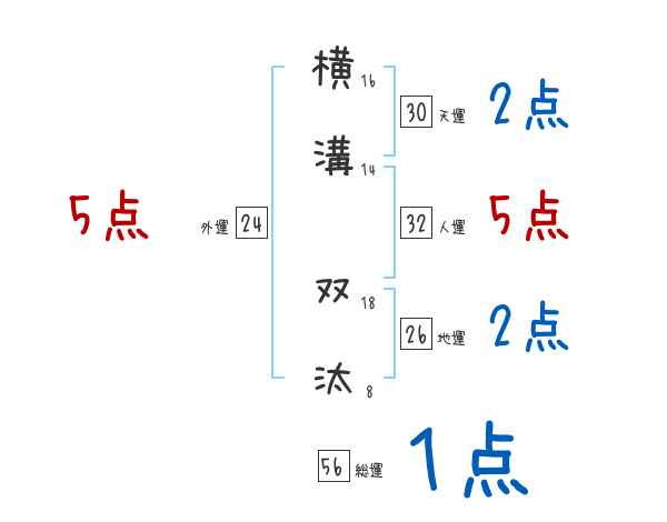 横溝双汰さんの画数の鑑定結果