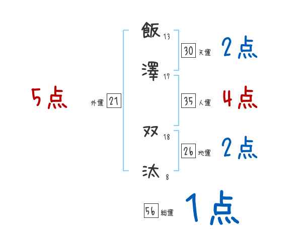 飯澤双汰さんの画数の鑑定結果