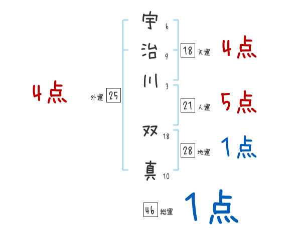 宇治川双真さんの画数の鑑定結果