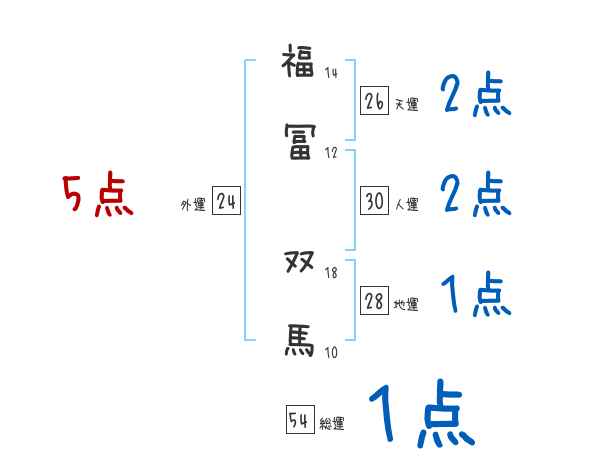福冨双馬さんの画数の鑑定結果