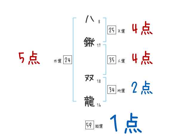 八鍬双龍さんの画数の鑑定結果