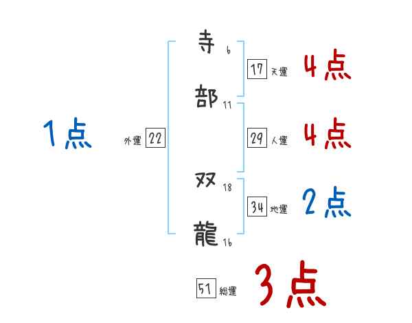 寺部双龍さんの画数の鑑定結果