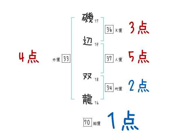 磯辺双龍さんの画数の鑑定結果