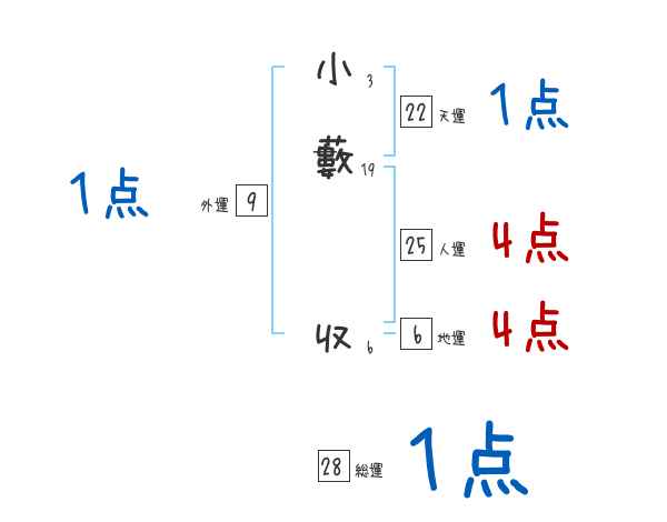 小藪収さんの画数の鑑定結果