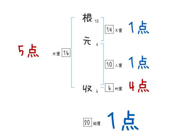 外運![]() | 根元収さんの外運は16画の5つ星!人望が厚く大きく発展する。逆転成功が見える。 生活面を象徴する運勢です。外部から受ける影響力を表し、結婚運、家庭運や職場、環境への順応性を表します。 |