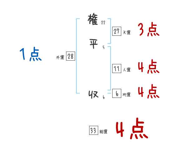 権平収さんの画数の鑑定結果