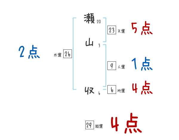 瀬山収さんの画数の鑑定結果