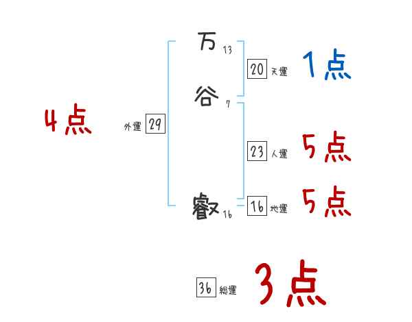 万谷叡さんの画数の鑑定結果