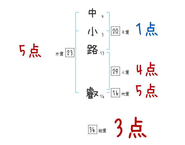 総運![]() | 中小路叡さんの総運は36画の3つ星!先見性が豊かです。多少神経質で苦労することも。 あなたの人生を表す1番重要な運勢です。生涯を通じて影響する総合運となり、主に50歳以降の晩年期に影響を及ぼします。 |