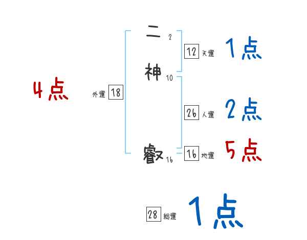 二神叡さんの画数の鑑定結果