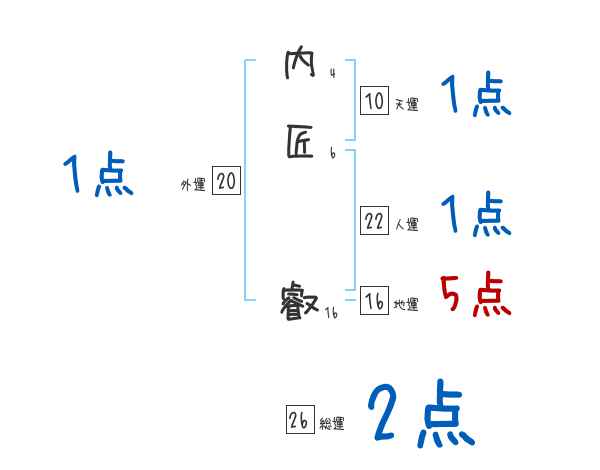天運![]() | 内匠叡さんの天運は10画の1つ星!不安を感じやすい傾向。ストレスを抱えないように注意しましょう。 家系が持つ宿命的な運勢を表します。祖先から受け継いだ苗字ですので自分の力が及びません。家柄を象徴します。 |