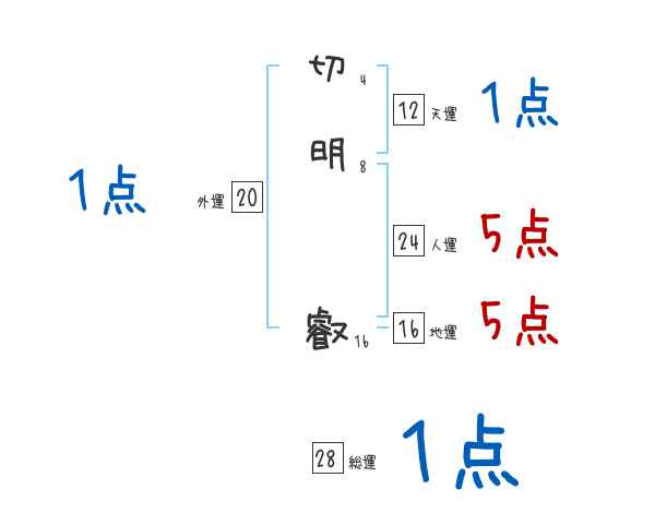 切明叡さんの画数の鑑定結果