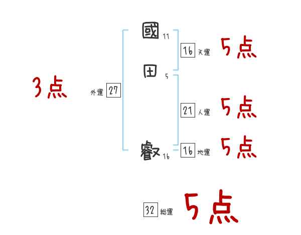 國田叡さんの画数の鑑定結果