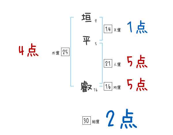 垣平叡さんの画数の鑑定結果