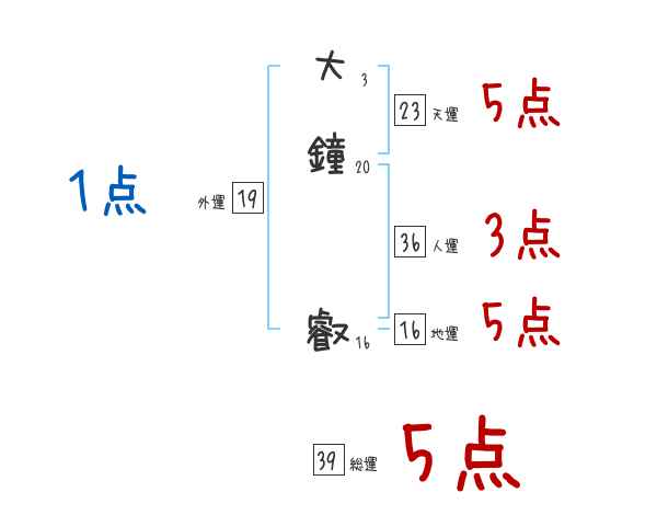 大鐘叡さんの画数の鑑定結果